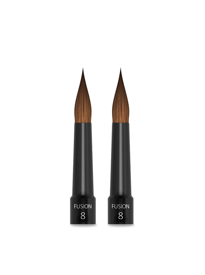 Fusion brings modern ingenuity to the timeless Kolinsky brush, synergized by a perfect mixture of natural and synthetic hair. Pure Kolinsky, owns the point.